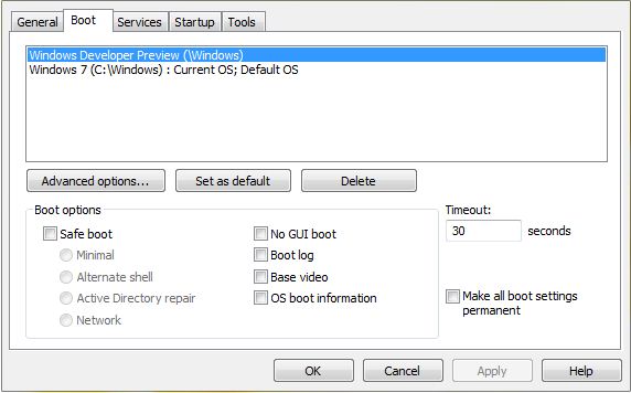 As you can see above, the screenshots are showing the Boot Menu of Windows 8. Here you have to change the default OS as windows 7 instead of Windows 8 Developer Preview. Either way, even if you are keeping your Windows 8 though I will recommend you to keep Windows 7 Boot loader, as its faster.