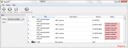 Npackd is a freeware windows package manager for windows. It consists of all windows application needed by a basic user. From this application you can keep track of software installed on your system and others that are not installed. You can also find updates to these software and install them easily.